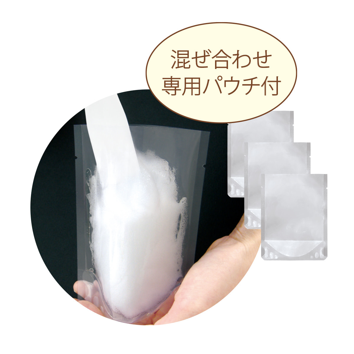 ②1剤・2剤を残さず混ぜ合わせ専用パウチに入れます。