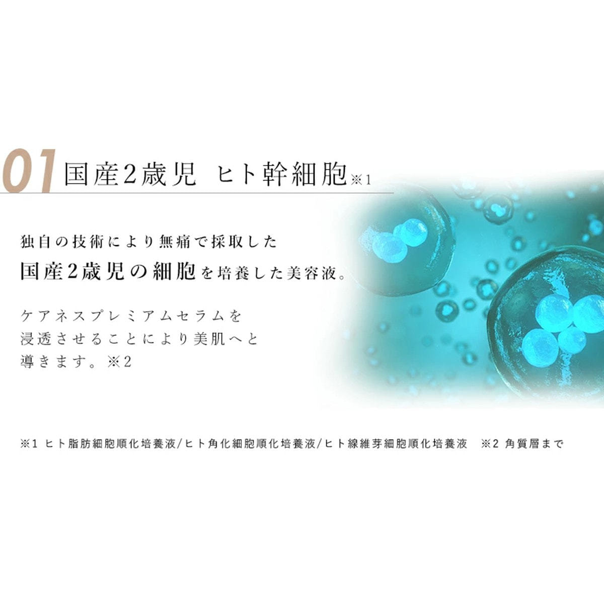 原料から研究・製造する企業だからこそできたヒト由来幹細胞エキス95%濃度。